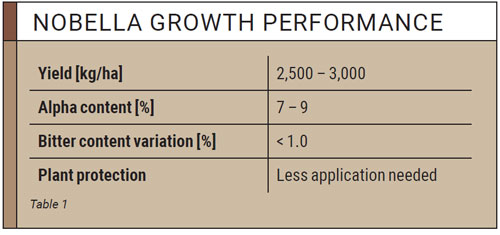 Nobella demonstrates the potential of next-generation aroma hops by combining noble flavour heritage with modern agronomic performance. For growers, disease resistance and climate tolerance ensure reliable alpha acid supply and higher yields. For brewers, Nobella not only offers a fine and noble hop aroma, but also a mid-range level of alpha acids for bitterness and a high linalool content, which enables early and late hopping with reduced hop dosages. This results in lower wort losses, and in particular lower transport volumes and storage requirements.