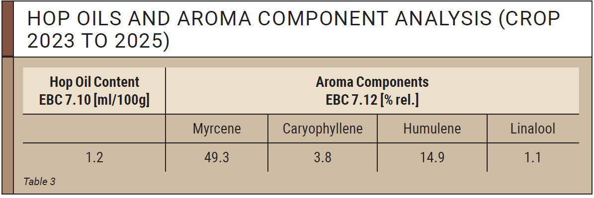 The average hop oil content is 1.2 ml/100 g (table 3).